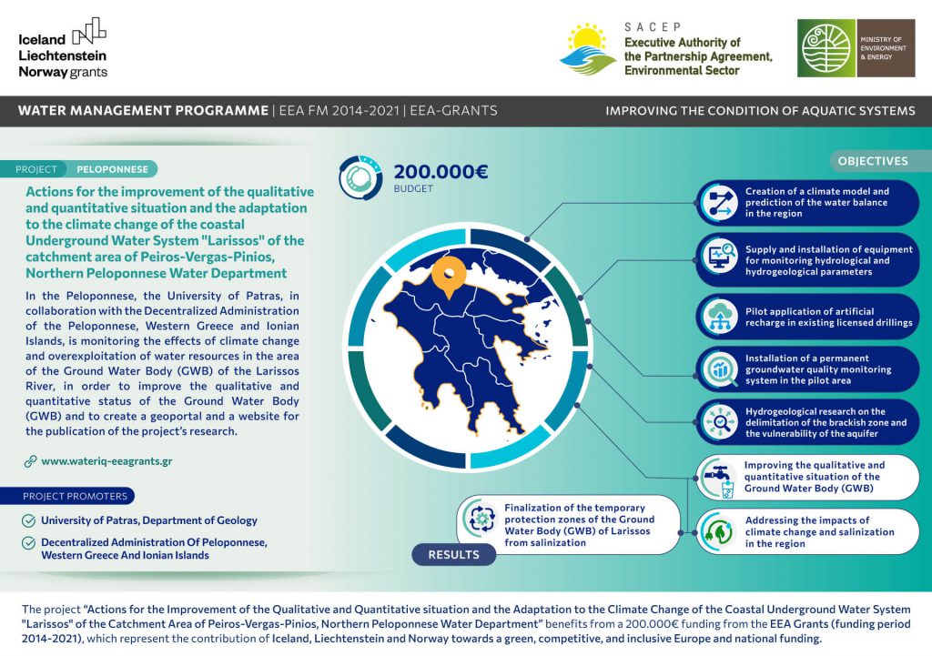 Actions for the improvement of the qualitative and quantitative situation and the adaptation to climate change of the coastal Underground Water System “Larissos” of the catchment area of Peiros-Vergas-Pinios, Northern Peloponnese Water Department