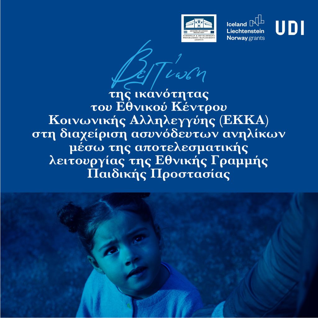 Βελτίωση της ικανότητας του ΕΚΚΑ στη διαχείριση ασυνόδευτων ανηλίκων μέσω της αποτελεσματικής λειτουργίας της Εθνικής Γραμμής Παιδικής Προστασίας